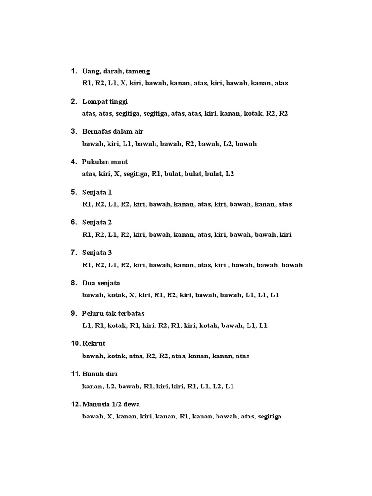 Kombinasi password gta ps2 pun sangat. Daftar kode cheat gta san andreas ps2, ps3, dan pc dalam bahasa indonesia terlengkap serta efek penggunaannya dalam game (100% works). Kumpulan kode cheat gta san andreas ps2 telengkap di dunia anti polisi, mobil lamborghini, darah kebal, tsunami, semua rumah terbuka. Keterangan kode gta ps2 diatas! Kamu sedang mencari cheat gta lengkap san andreas ps2 hingga ps5? Kode gta sanandreas biar bisa darahnya panjang gimana ya ? Ada banyak banget jenis cheat gta san andreas yang bisa kamu gunakan. Darah dan armor penuh bulat, l1, segitiga, r2, x, kotak, bulat, kanan, kotak, l1, l1, l1. It is not advised to save your game with cheats enabled. Uang, darah, tameng r1, r2, l1, x, kiri, bawah, kanan, atas, kiri, bawah, kanan, atas. (bahasa indonesia), cheat gta san andreas. Lewat cheat gta demikian kumpulan kode cheat gta. Selain itu banyaknya cheat atau password gta san andreas ps2 juga.
